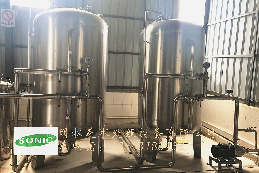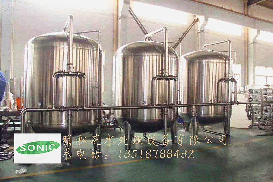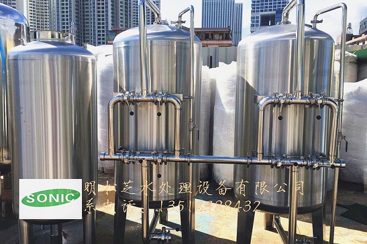 地下水、水庫水中含有多種雜質(zhì),如懸浮物、膠體、重金屬、有機物、鐵銹和無機鹽等,為保證水質(zhì)達標(biāo),則必須先去除水中的懸浮物、膠體、有機物等,使反滲透的進水達到要求,故本系統(tǒng)設(shè)置多介質(zhì)過濾器+活性炭過濾器+軟化器+殺菌作為原水處理系統(tǒng)。本處理系統(tǒng)包括原水箱、原水增壓泵、多介質(zhì)過濾器、活性炭過濾器、離子交換軟水器、殺菌設(shè)備、凈化水水箱及反洗系統(tǒng)。
