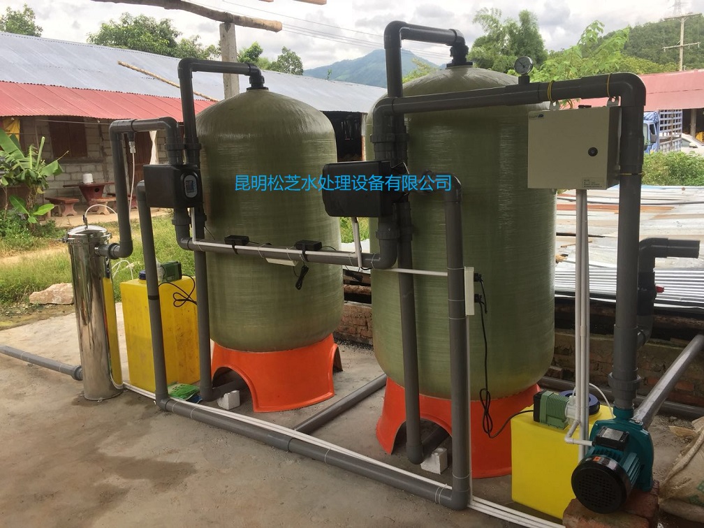 地下水、水庫(kù)水中含有多種雜質(zhì),如懸浮物、膠體、重金屬、有機(jī)物、鐵銹和無機(jī)鹽等,為保證水質(zhì)達(dá)標(biāo),則必須先去除水中的懸浮物、膠體、有機(jī)物等,使反滲透的進(jìn)水達(dá)到要求,故本系統(tǒng)設(shè)置多介質(zhì)過濾器+活性炭過濾器+軟化器+殺菌作為原水處理系統(tǒng)。本處理系統(tǒng)包括原水箱、原水增壓泵、多介質(zhì)過濾器、活性炭過濾器、離子交換軟水器、殺菌設(shè)備、凈化水水箱及反洗系統(tǒng)。