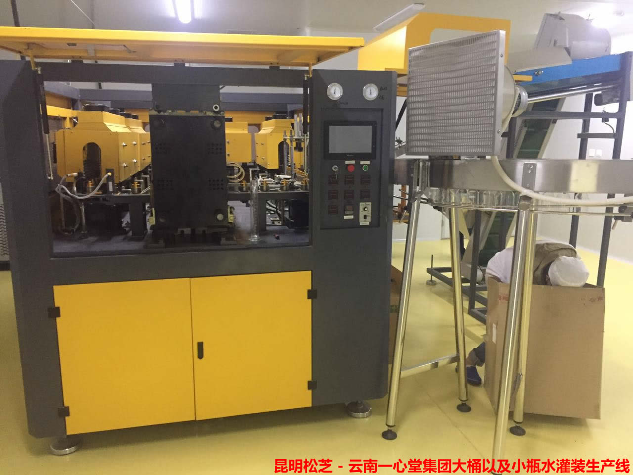 采用磁力扭矩式擰蓋頭,實現(xiàn)抓蓋、擰蓋功能。擰蓋力矩無級可調(diào),具有恒力矩旋封塑蓋功能。套標縮標一體機采用獨家設計往復式切刀,采機構(gòu)鋼體組合,動作平順,刀具壽命延長一倍。 簡易式中心導柱定位,規(guī)格更換更容易,操作者使用方便。機種首創(chuàng)同步帶瓶DC無刷馬達帶動。熱收縮包裝機選用德國、日本進口原件,包裝組合和瓶型改變時調(diào)整方便,性能穩(wěn)定,包裝效果極佳。整機采用人機界面觸摸屏控制、PLC電腦程序控制、變頻器控制等先進技術(shù)。具有供蓋系統(tǒng)自動控制、灌裝溫度自動檢測、物料高溫報警、低溫停機并自動回流、無瓶不加蓋、缺瓶等待、缺蓋停機等功能。產(chǎn)量3000-24000瓶/小時可供用戶選擇。
