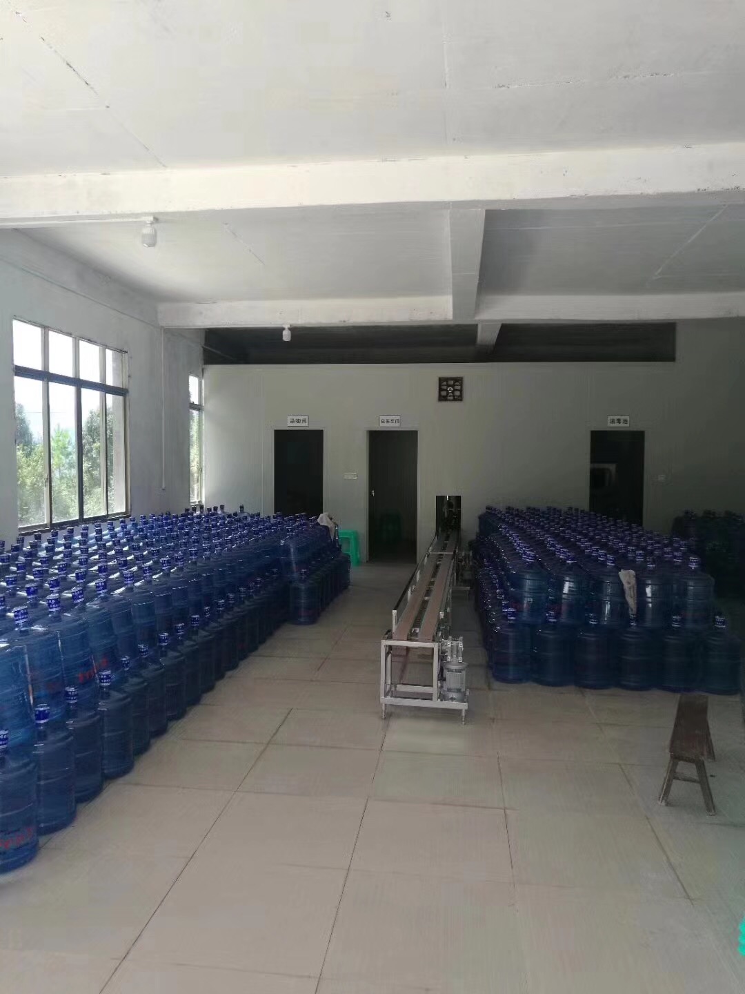 峽古原水的桶裝水桶,空桶全部整齊碼放在空桶區(qū),可以隨時進行生產(chǎn)!